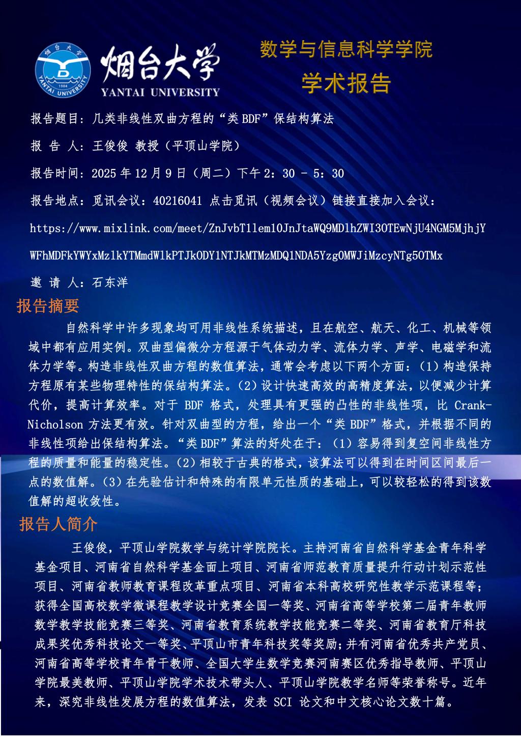 学术报告—王俊俊 教授(平顶山学院)—20251209